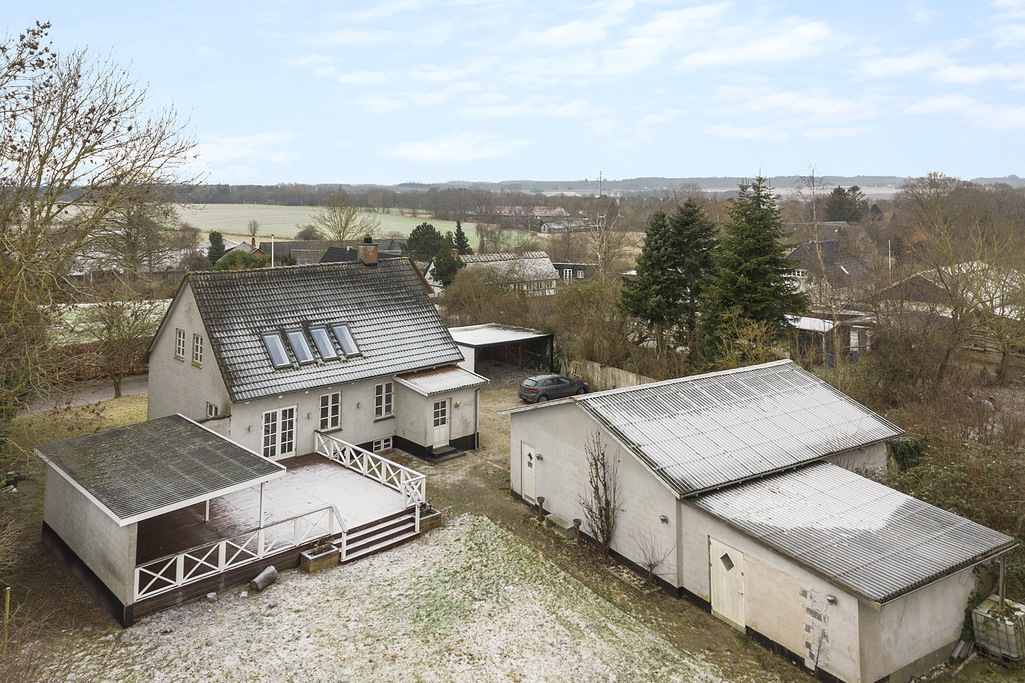 Ejendom med dobbeltcarport, udsigt over åbne marker og lækker 1. sal med loft til kip.