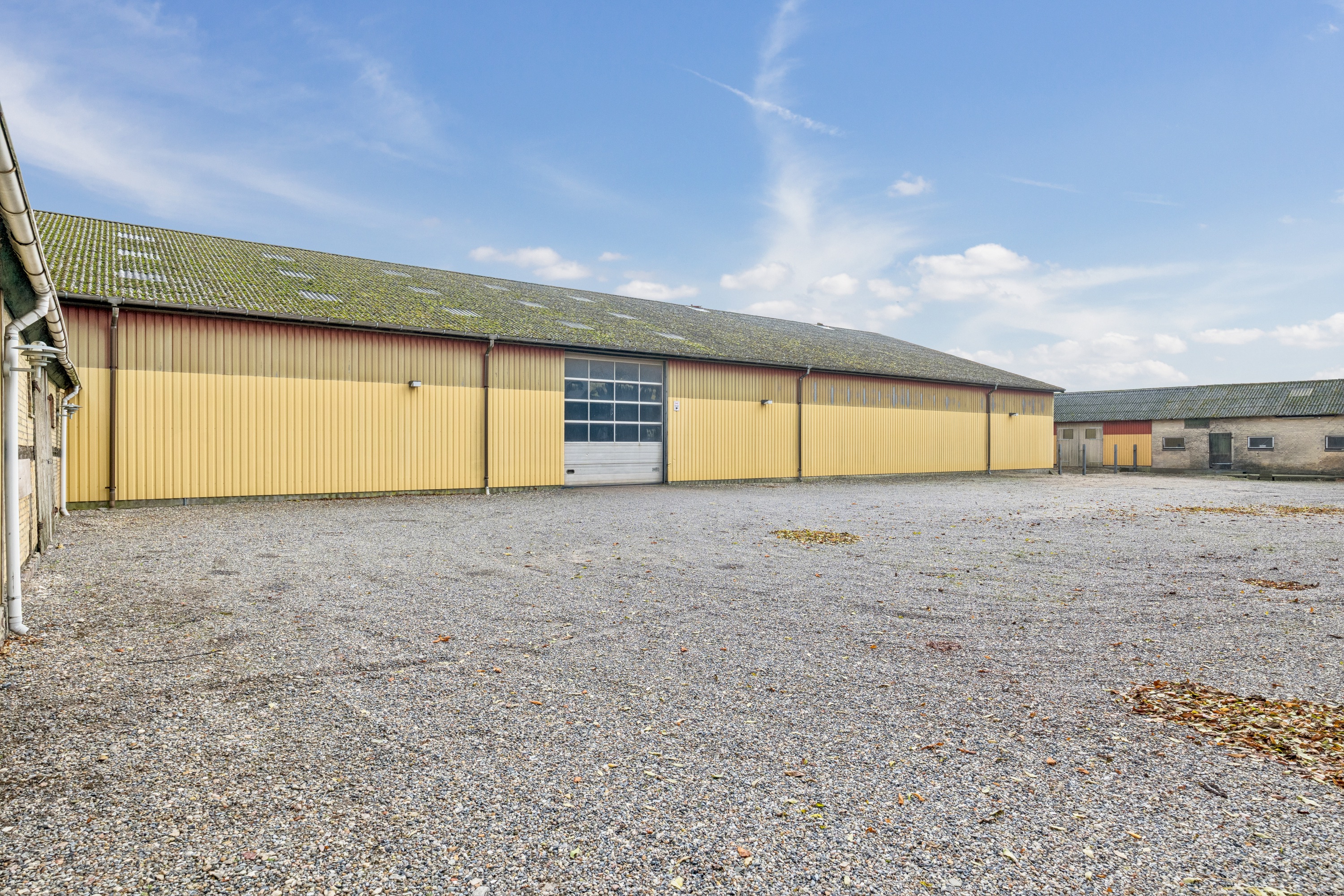Hestebokse og hestefolde til fire heste. Stålhal på 1000 m2.
